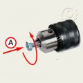 Первый способ самый простой и доступный. Для этого необходимо зажать в патрон шестигранный ключ (Рис.3) и удерживая одной рукой сам инструмент, резко ударить по ключу в сторону откручивания (Рис.3_А). Эффективнее произвести удар ближе к патрону. Дело в том, что если мы будем наносить удар по краю ключа, то часть удара поглотится самим ключом (изгиб, отдача) и эффективность заметно снизится. Ближе к патрону весь удар придется на патрон и результат будет лучше.