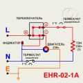 Штатные схемы теплогенераторов представлена на рисунках (ЕНR-02-1А), (ЕНR-03-1А) и (ЕНR-05-1В). Модели ЕНR-02-1А и ЕНR-03-1А идентичны и отличаются мощностью ТЭНов. Режим работы простой: 1-вентиляция, 2-нагрев. В модели ЕНR-05-1В используется уже 3 ТЭНа и жежим работы здесь такой. В первом положении происходит вентиляция без нагрева. Во втором положении включаются 2 ТЭНа и в третьем положении подключается еще один ТЭН.