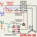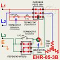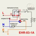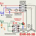 В данной статье можем предложить альтернативные варианты подключения (ЕНС-03-1В альт. и ЕНС-05-1В альт.). Предлагаем вывод обмотки двигателя завести не перед термостатом, а между аварийным термостатом и термостатом регулировки температуры. На рисунке альтернативное подключение обозначено красными линиями. В этом варианте срабатывание аварийного термостата обесточит не только ТЭНы, но и сам двигатель. Открыть в новой вкладке