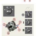 Переключатель имеет пять положений включения (Рис.1). Отключенное состояние, вентиляция, режим нагрева на 1\3 от полной мощности, нагрев на 2\3 и полный нагрев, когда работают все 6 ТЭН-ов. Распиновка контактов выключателя показана на Рис.1. Контактные группы замыкаются своеобразным образом. Порядок замыкания контактов можно будет проследить по дальнейшим схемам.