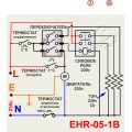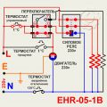 В конструкции имеется аварийный термостат, который должен сработать при нештатной ситуации, например возгорание. На схеме он обозначен как "ТЕРМОСТАТ аварийное отключение". При срабатывании он обесточит ТЭНы, но электродвигатель при этом будет продолжать свою работу. Если произошло возгорание, то вентилятор только будет раздувать огонь. В этом случае пользователю необходимо в спешном порядке обесточить устройство в ручном режиме, повернув переключатель в выключенное состояние. В этой статье можем предложить альтернативный вариант подключения (ЕНR-05-1В альт.). Предлагаем вывод обмотки двигателя завести не перед термостатом, а после него. На рисунке он обозначен красной линией. В этом варианте срабатывание аварийного термостата обесточит не только ТЭНы, но и сам двигатель (термостат обозначен красным цветом).
